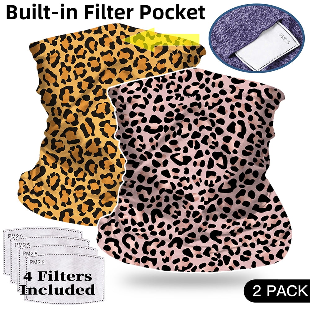 Cleanbreath Double Layer Neck Gaiter Tube Reusable Bandana With Pocket Washable Balaclavas Face Scarf For Men Women 2 Pack Rose Gold Leopard And Leopard Walmart Com